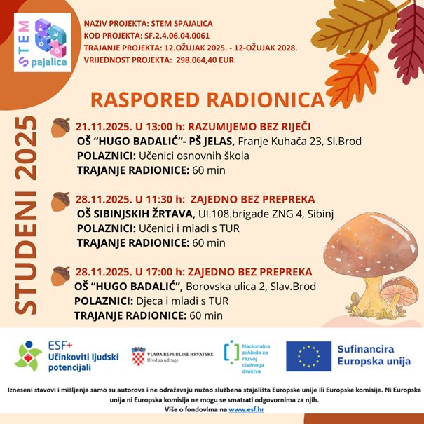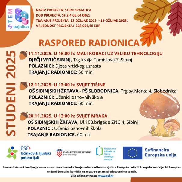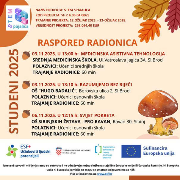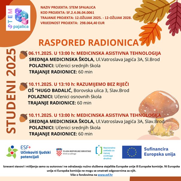 Donosimo Vam raspored radionica za mjesec STUDENI