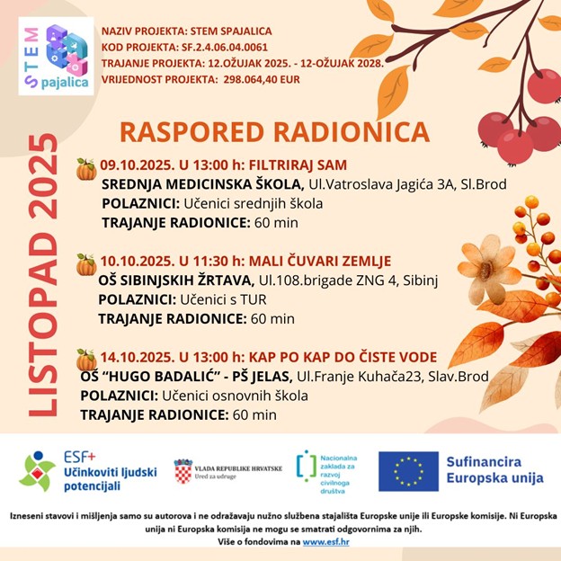 Projekt „STEM SPAJALICA“ sufinanciran je sredstvima Europske Unije iz Europskog socijalnog fonda plus putem Nacionalne zaklade za razvoj civilnog društva u okviru poziva “Jačanje kapaciteta organizacija civilnog društva za promociju STEM-a”