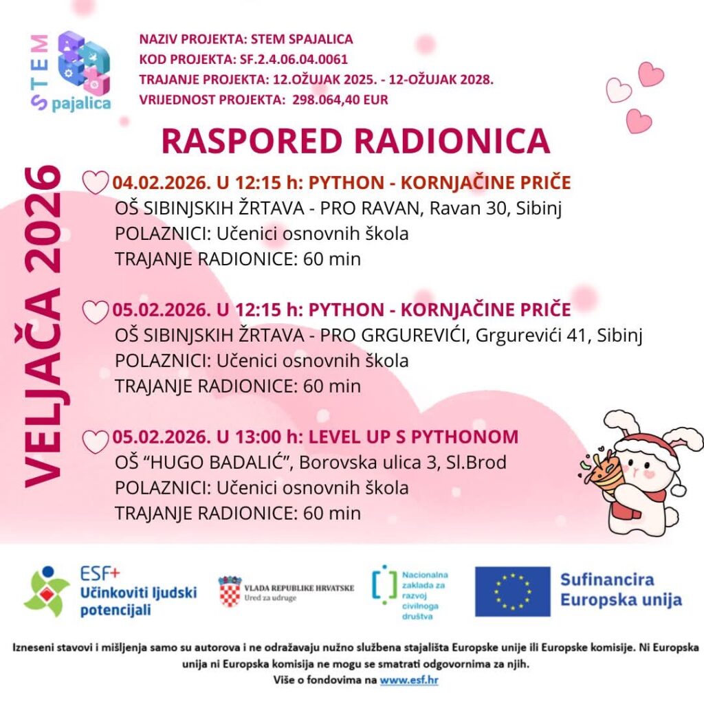 Udruga „Spajalica“ u okviru projekta STEM Spajalica organizira događaj "STEM ČAJANKA" u OŠ Sibinjskih žrtava - PRO Ravan u Ravnu. Dođite i posjetite nas! Budite i vi dio ove božićne STEM čajanke i sudjelujte u našim radionicama! 19. prosinca 2025. od 16 do 19 h OŠ...